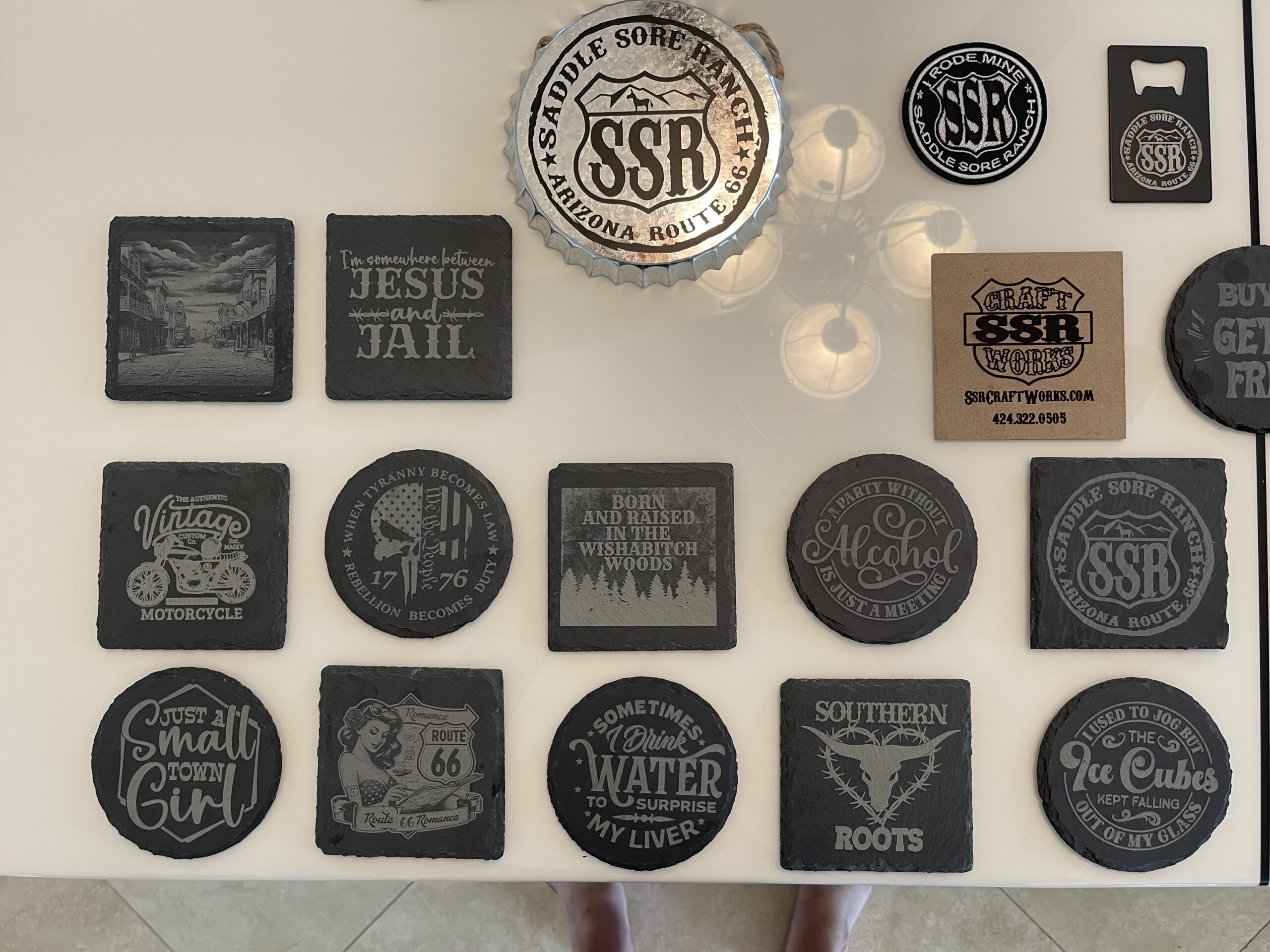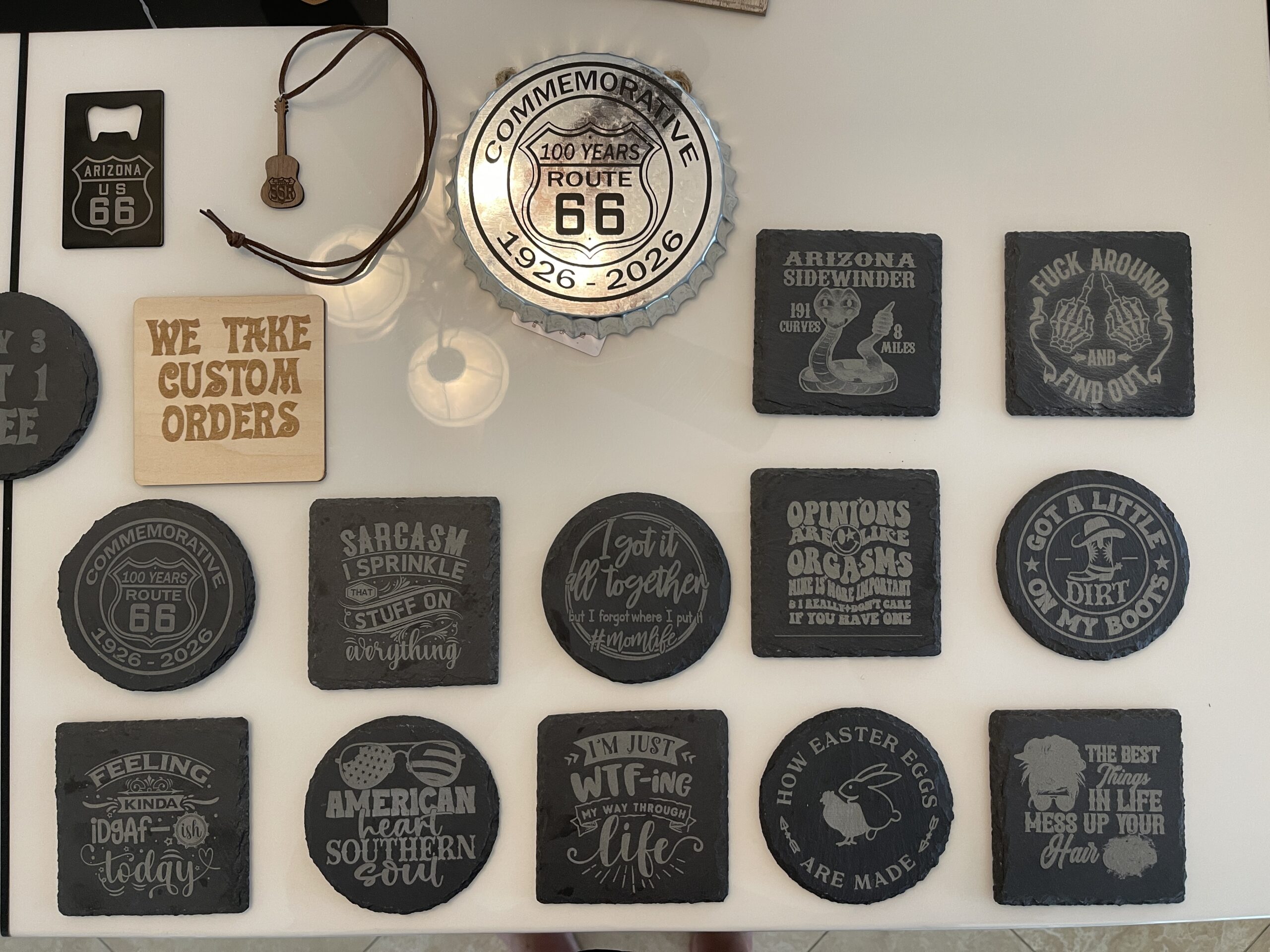 We offer all types of custom engraving, laser etching, vinyl lettering, leather tooling and more…. A few examples of what we can do are: